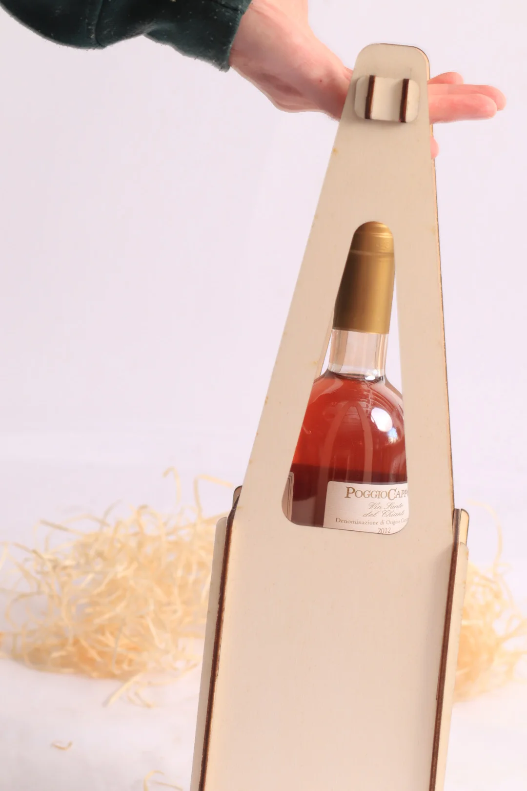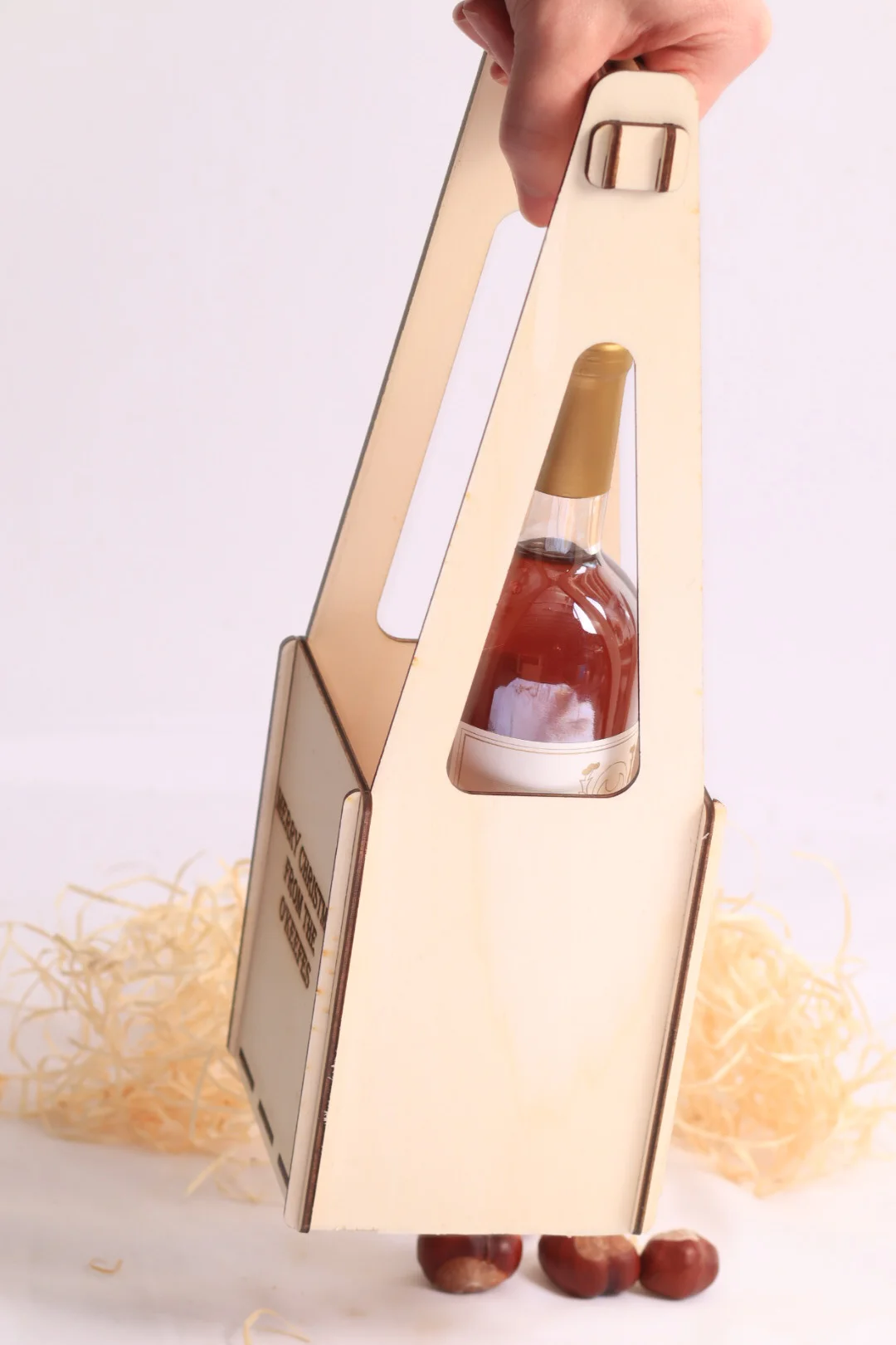 Handmade from lightweight yet durable poplar plywood, this carrier features clean laser-cut edges and a smooth natural finish. Measuring 110mm x 380mm, it fits standard wine bottles securely while offering a charming rustic look.