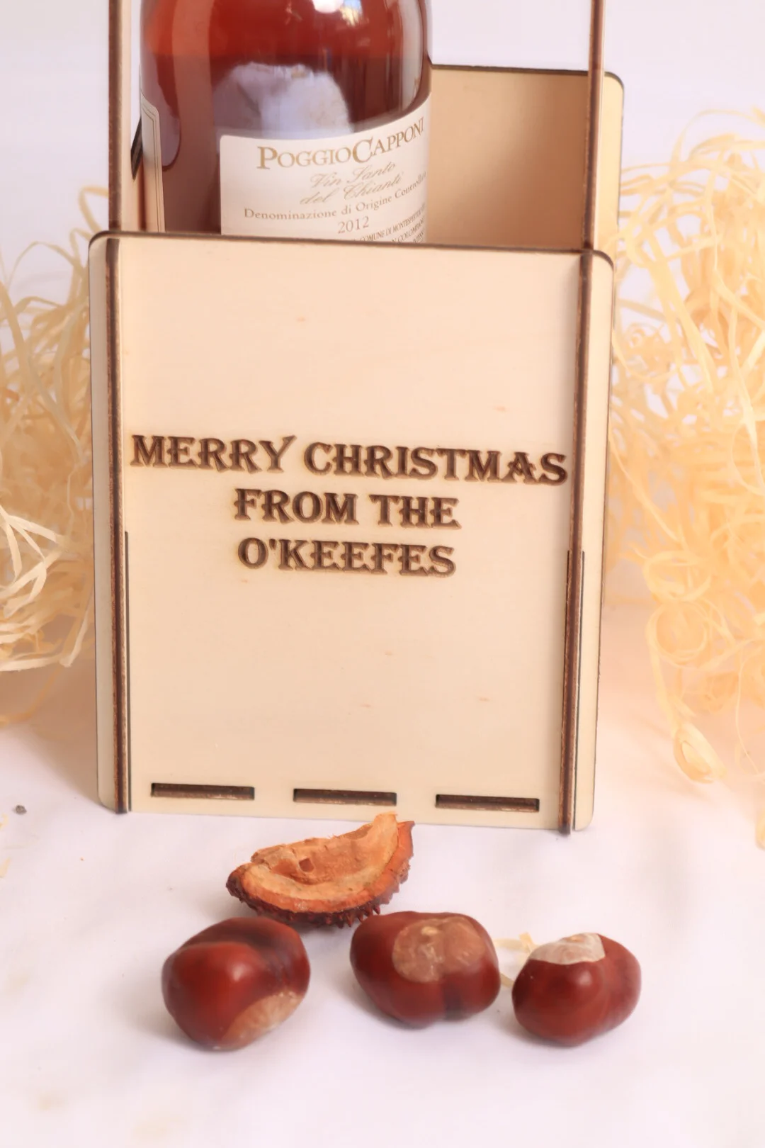 Present your favourite bottle in style with this beautifully crafted Personalised Wooden Wine Box, designed to add a touch of elegance to any celebration. Perfect for Christmas, weddings, anniversaries, corporate gifting or simply saying “thank you” in a unique and memorable way.